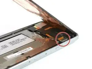 В правом верхнем углу находится разъём дисплея. Используйте лопаточку, чтобы отсоединить его.
