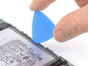 Проведите медиатором вдоль края батареи, чтобы разрезать клей и расширить зазор между батареей и рамой.