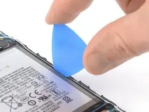 Используйте пластиковую карту, чтобы разрезать клей под батареей и приподнять её.