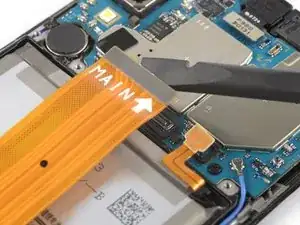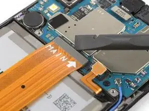 Используйте медиатор, чтобы поддеть и отсоединить нижний конец основного гибкого кабеля.
