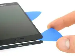 Поместите лопатка под кнопки громкости, чтобы выдавить верхний левый угол.