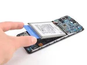 Осторожно проведите ею под аккумулятором, чтобы ослабить клей.