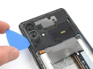 Проведите лопаткой вдоль верхнего края задней крышки, чтобы разрезать оставшийся клей.