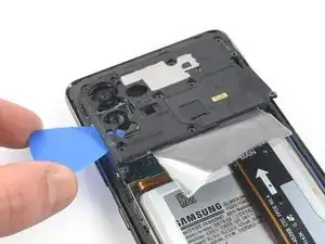 На этом этапе вставьте пластиковую карту в край с более широким зазором между средней рамой и аккумулятором, чтобы получить больше места для карты и лучший рычаг.