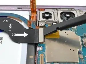 Используйте острый конец лопатки, чтобы приподнять и отключить пресс‑разъём антенны NFC.