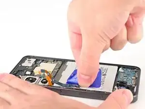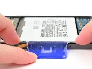 Если эти язычки не отделены, вы не сможете поднять батарею в следующем шаге. Их можно прикрепить скотчем к боковой части телефона или к экрану, чтобы они не мешали.
