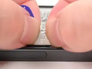 Прочно удерживайте телефон и захватите синий центральный тяговый язычок.