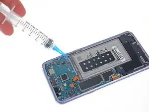 Если аккумулятор вздут, примите соответствующие меры предосторожности. Не нагревайте телефон. При необходимости можно использовать пипетку или шприц, чтобы ввести изопропиловый спирт (90+%) по краям задней крышки для ослабления клея. Вздутые аккумуляторы могут быть крайне опасны, поэтому используйте защиту для глаз и проявляйте осторожность, либо отдайте устройство профессионалу, если не уверены в дальнейших действиях.