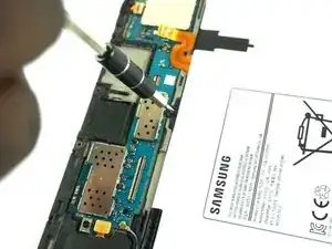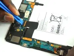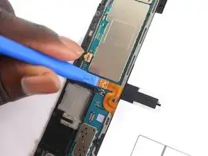 Проведите пластиковым инструментом по краям планшета, чтобы извлечь материнскую плату из устройства.