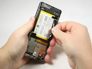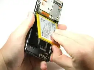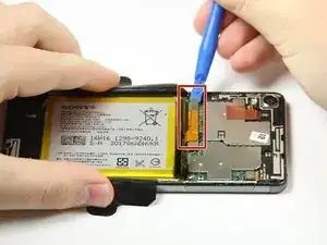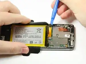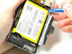 Используйте пластиковый инструмент для вскрытия, чтобы поддеть аккумулятор и приподнять его.