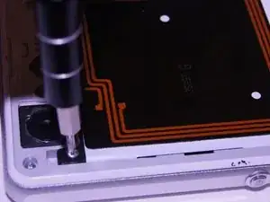 Удалите одиночный винт 1 x 3.0 мм, удерживающий аккумулятор, с помощью отвертки JIS #00.