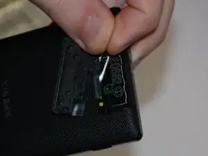 Удалите чёрный винт, расположенный прямо под основной (тыловой) камерой