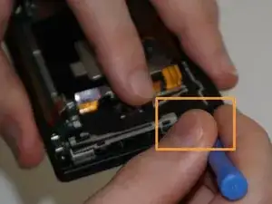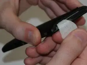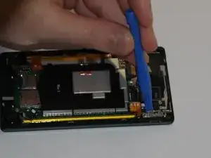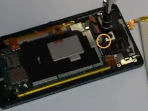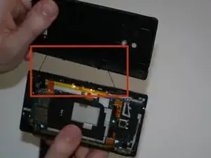 Этот шаг включает снятие верхнего модуля камеры и динамика. Прочтите следующие два шага перед началом, так как можно легко оборвать ленточный кабель, если поддевать часть слишком далеко
