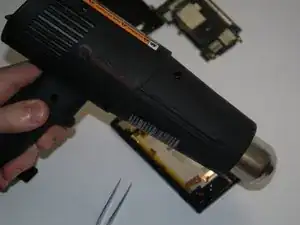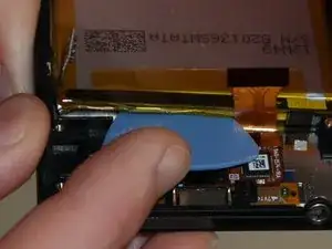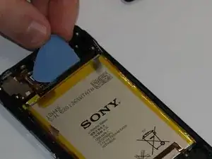 Засуньте инструменты как можно глубже и подденьте вверх. При необходимости повторите процесс нагрева, и с достаточной осторожностью и терпением батарея должна отойти. На третьем фото видны области, где батарея приклеена к корпусу