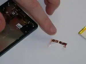 Это тот гибкий кабель, который, вероятно, порвётся, если вы будете неаккуратны при снятии разъёмов с клея. Я полагаю, что это кабель датчика приближения, который выключает экран, когда ваше лицо близко к телефону (во время телефонного разговора)