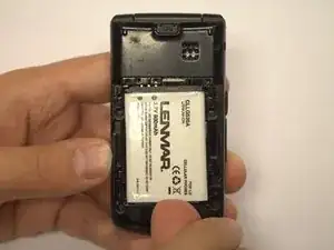 Держите телефон в одной руке и, используя указательный палец другой руки, извлеките аккумулятор из телефона, поддев его в углублении, расположенном в нижней части телефона.