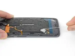 Проведите медиатором вдоль края телефона, чтобы перерезать клей задней крышки.