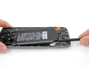 В качестве альтернативы можно нагреть среднюю рамку, чтобы смягчить клей аккумулятора, но будьте очень осторожны, чтобы не перегреть аккумулятор.