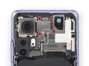 Используйте отвертку Phillips, чтобы выкрутить четыре винта длиной 5.4 мм, фиксирующие крышку разъёма вспышки.