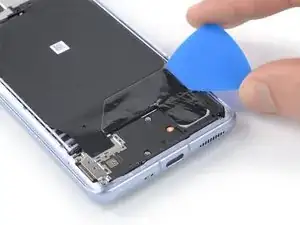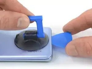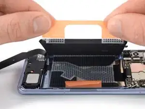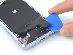 Проведите медиатором в направлении порта зарядки, чтобы отделить клей.