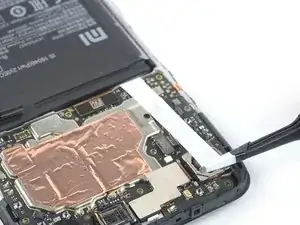 Используйте лопатку, чтобы отсоединить шлейф батареи, поддев разъём и выпрямив его вверх из гнезда.