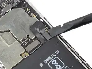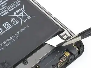 Если клеевая полоса оторвётся, попытайтесь подцепить её пальцами или тупым пинцетом и продолжите тянуть — но не поддевать аккумулятор.