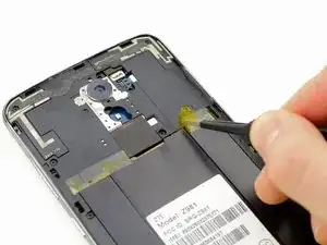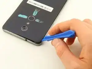 Нажмите на пластиковый инструмент, чтобы отделить заднюю панель от остальной части телефона.