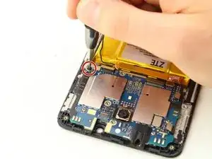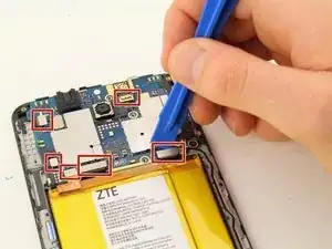 Подденьте пластиковой лопаткой материнскую плату, расположенную в верхней части телефона.