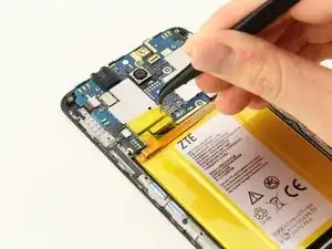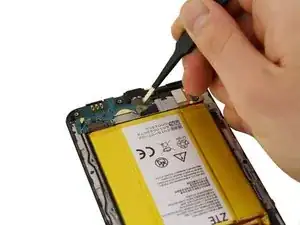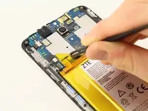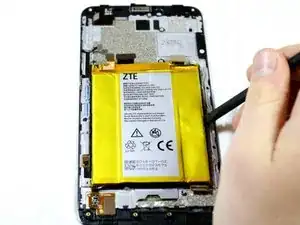 Используйте нейлоновую лопатку, чтобы поддеть аккумулятор и извлечь его из телефона.