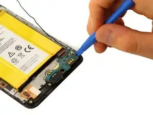 Продолжайте работать вдоль всей платы разъёма зарядки, пока она полностью не выйдет из телефона.