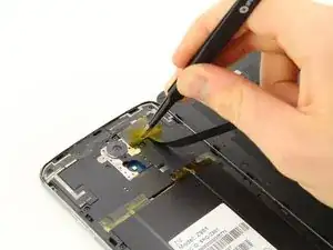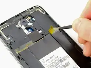 Пинцетом отогните жёлтую каптон-ленту, расположенную с правой стороны телефона.
