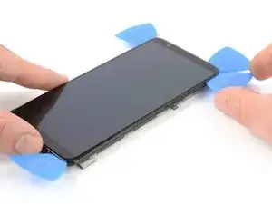 Используйте инструмент, чтобы создать зазор между задней крышкой и дисплеем.