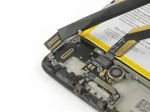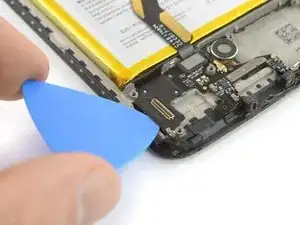 Межсоединительный шлейф удерживается слабым клеевым слоем. Если возникают трудности с удалением, можно применить нагретый iOpener для ослабления клея под ним.