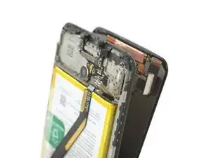 Постарайтесь пока не снимать дисплей полностью: шлейф дисплея всё ещё проходит через рамку и возможно приклеен с внутренней стороны серединной рамы.