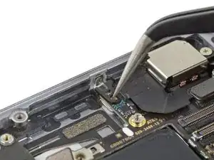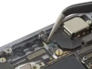 Снимите один винт Phillips 1,2 мм, фиксирующий кабель антенны к логической плате.