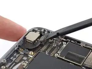Используйте лопатку или ноготь, чтобы отсоединить разъем кабеля кнопки «Домой».