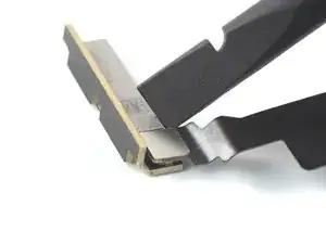 Используйте пинцет, чтобы снять кронштейн кабеля дисплея, потянув его снизу корпуса в направлении камер.