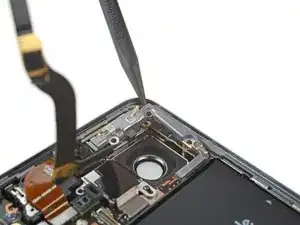 Кабель экрана расположен чуть менее чем по центру левого края телефона. Будьте предельно осторожны, чтобы не порвать кабель.