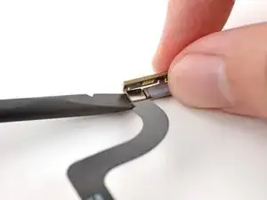 Используйте лопатку, чтобы поддеть и отключить разъём аккумулятора.
