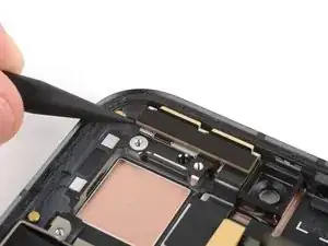 Используйте отвертку Torx Plus 3IP, чтобы снять винт длиной 4,3 мм, фиксирующий динамик разговорного канала к раме.
