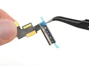 Натяжение этого кабеля затрудняет повторное подключение. При необходимости зафиксируйте шейку кабеля пинцетом и выровняйте её над гнездом перед нажатием вниз для фиксации.