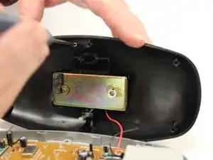 Внутри крышки базы найдите винт, удерживающий антенну на месте, и используйте отвертку Phillips #00 для удаления винта размером 6 мм.