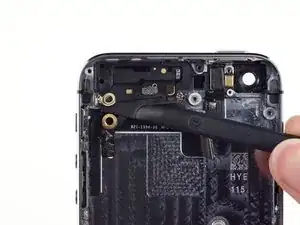 Используйте пинцет, чтобы удалить пластину из-под крепления слева от камеры, обращенной назад.