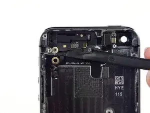 Удалите два винта Philips #000 длиной 1,6 мм, удерживающие крепление камеры, обращенной назад.