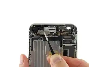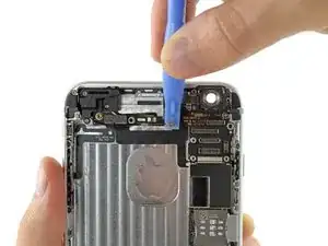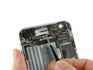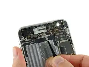 Используйте щипцы, чтобы взять и удалить верхнюю сотовую антенну из iPhone.