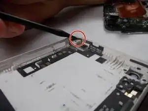 Аккуратно подденьте одной стороной лопатки полоску антенны и отсоедините её. Так нужно сделать во всех четырёх углах.
