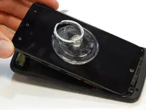 Как только обе стороны будут отсоединены, используйте инструмент с присоской, чтобы полностью удалить экран из черного корпуса.