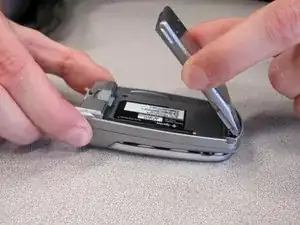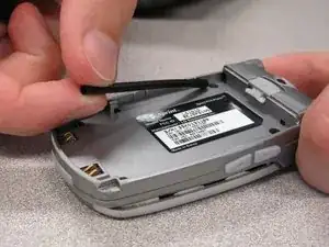 Потяните кожух антенны (чёрная трубка) в сторону нижней части телефона и снимите его.