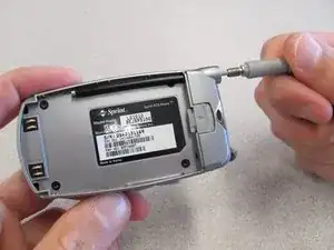 Держите телефон одной рукой крепко, другой рукой отверните и снимите антенну.