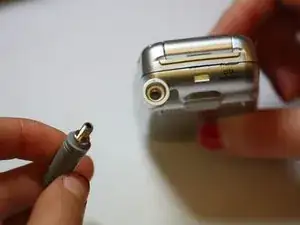 Удерживайте серую внешнюю антенну двумя пальцами.